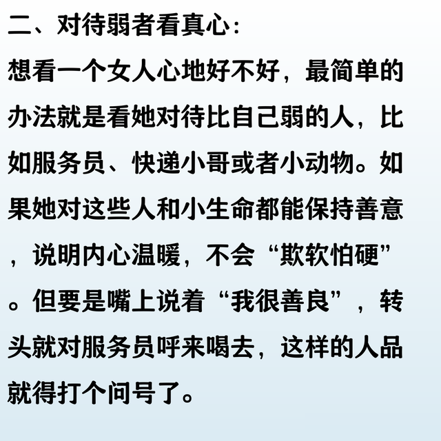 DeepSeek建议, 一个女人的品行好不好, 可以从这几个方面去试探